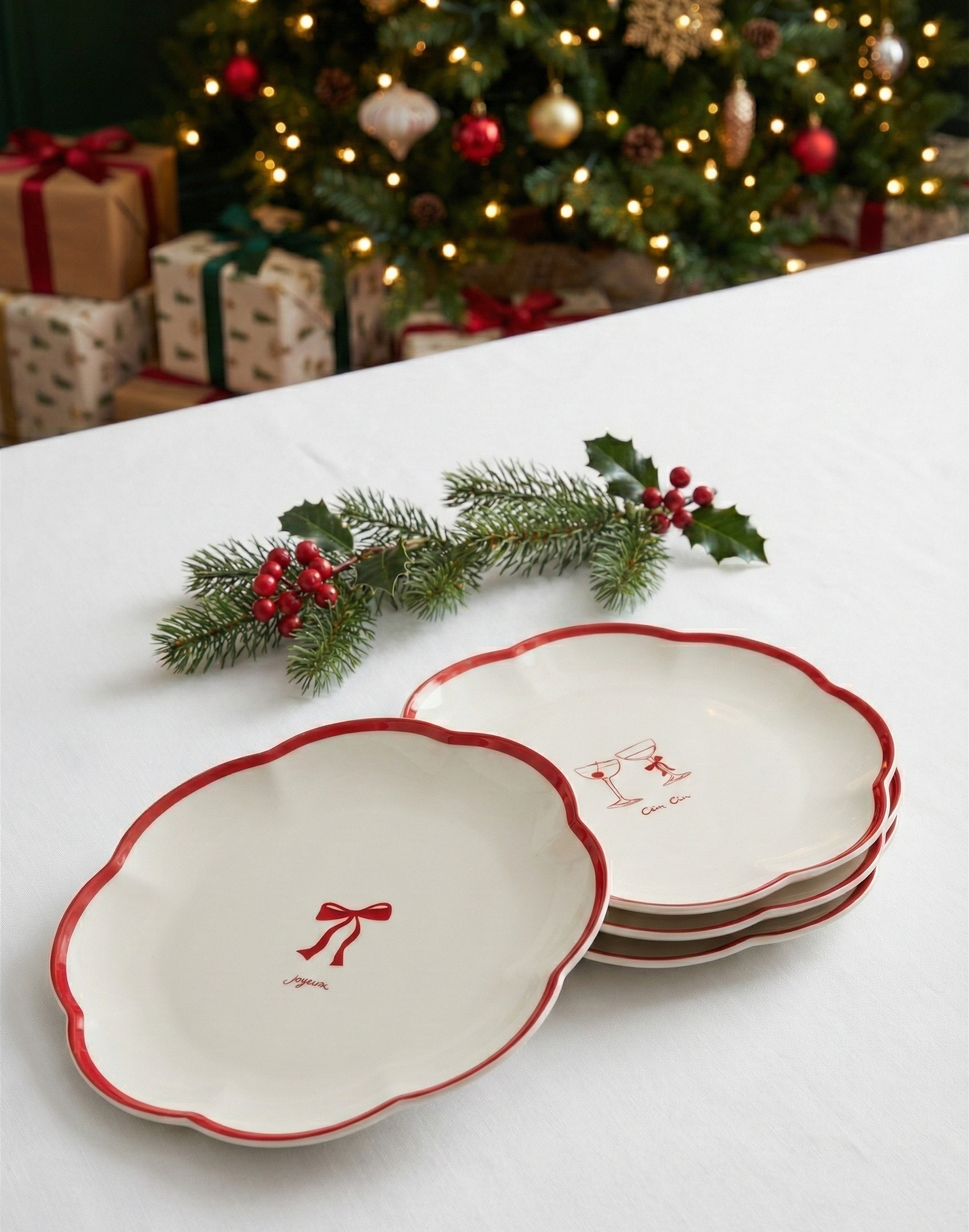 Defined by fluid, scalloped silhouettes and a signature rouge rim, the Coquette Collection explores the feminine spirit of the season. Featuring hand-illustrated motifs by artist Anastasia Tanuputri, each piece is a porcelain postcard - whispering of love in Greek, cheers in Italian, and joy in French.