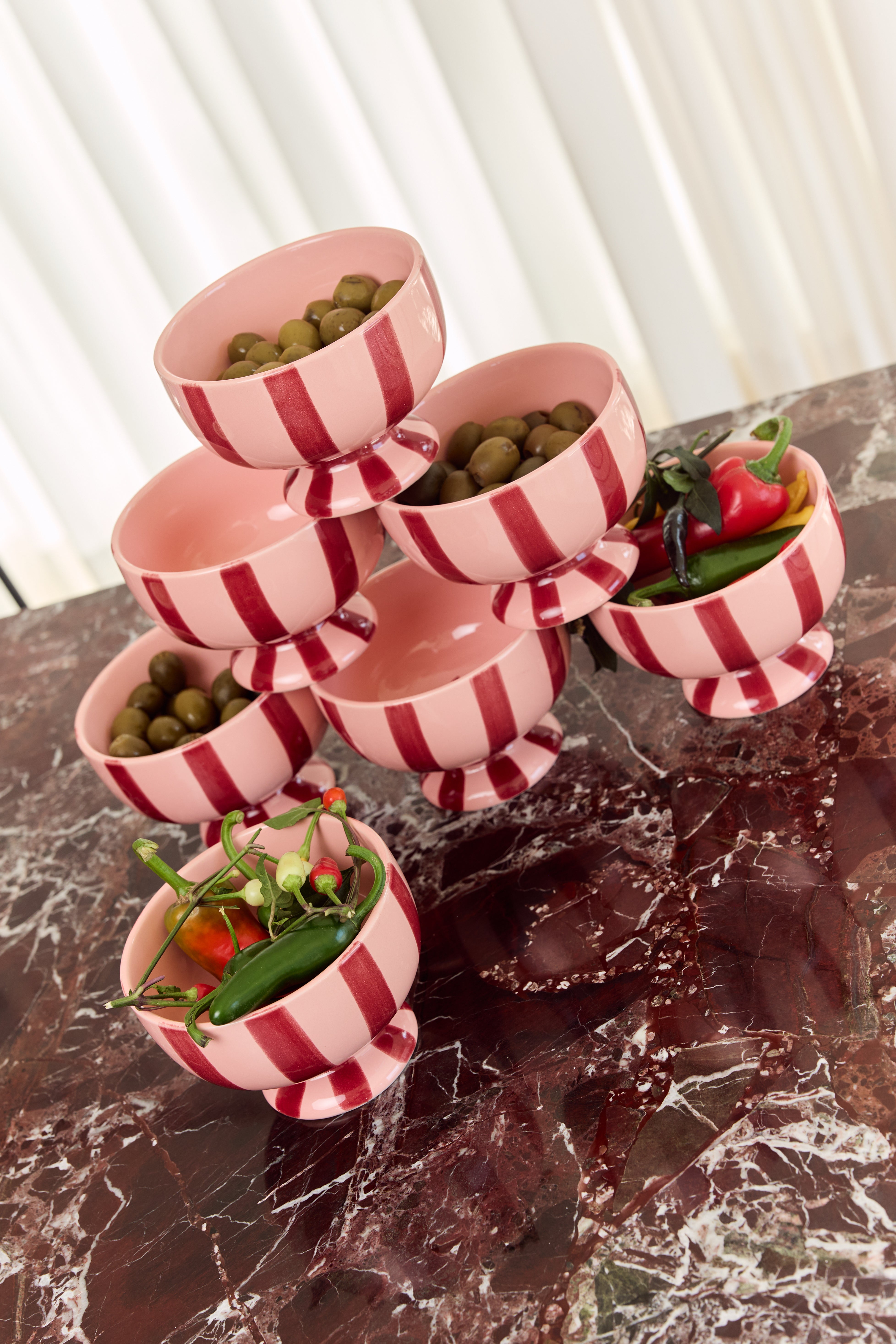 With its delightful candy stripe design, hand-painted in shades of blush and cherry, Lou Lou is more than just a bowl; it's a little vessel for celebrating life's simple pleasures. Use it for your morning yogurt, a scoop of your favourite ice cream, a handful of berries, or even to hold your most treasured trinkets.